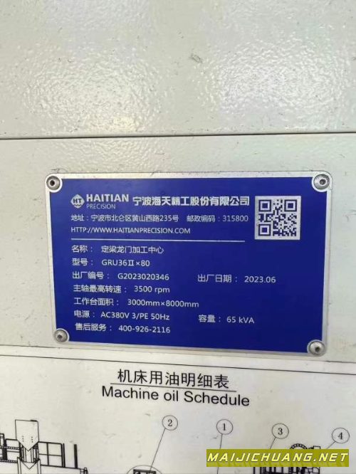 海天3X8龙门加工中心三行程X 8500 X 4300 X 1.5门高2..